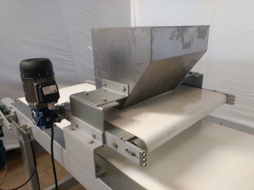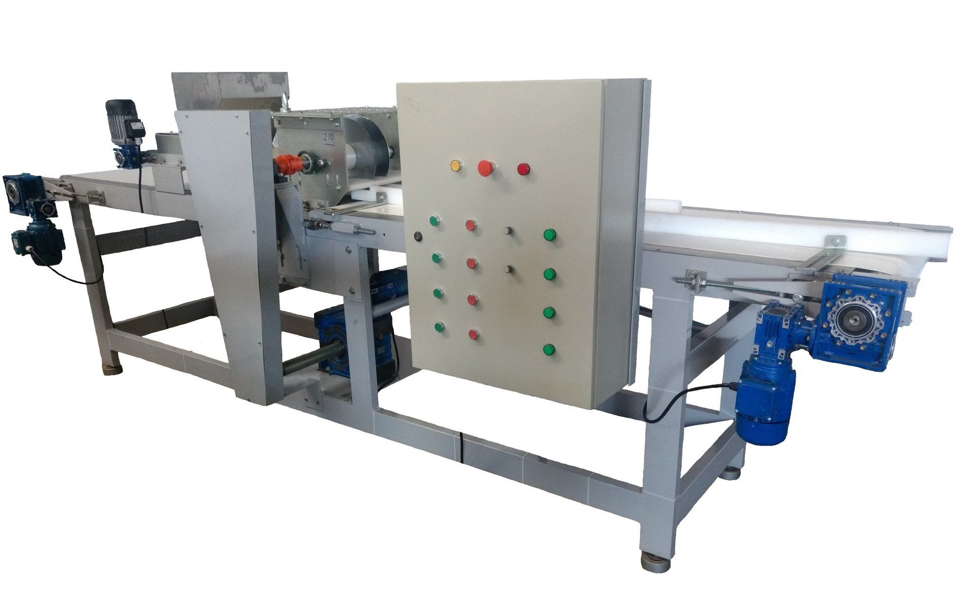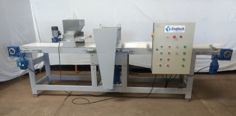 Fabricado com materias em conformidade com as normas da Anvisa, o equipamento realiza o corte nos sentidos longitudinal através de discos, e tranversal através da guilhotina, além da aplicação de açucar, garantindo a conformidade das dimensões dos doces, aumentando a produtividade e reduzindo a mão de obra humana.